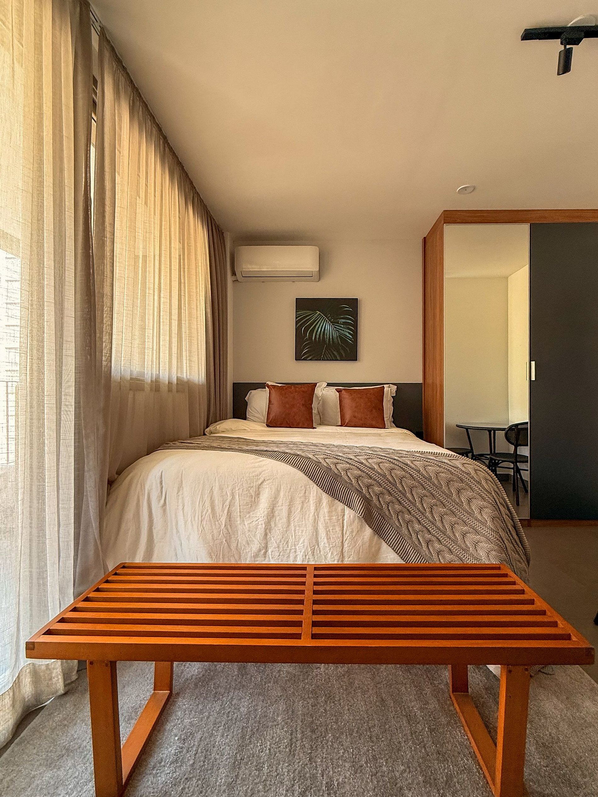 Studio extremamente confortável, bem iluminado e com wi-fi rápido, localizado no Jardins. Ideal para quem busca praticidade, local com coworking estruturado, descanso e boa localização em São Paulo. Além de um lugar com blackout perfeito para as noites de sono revigorantes.