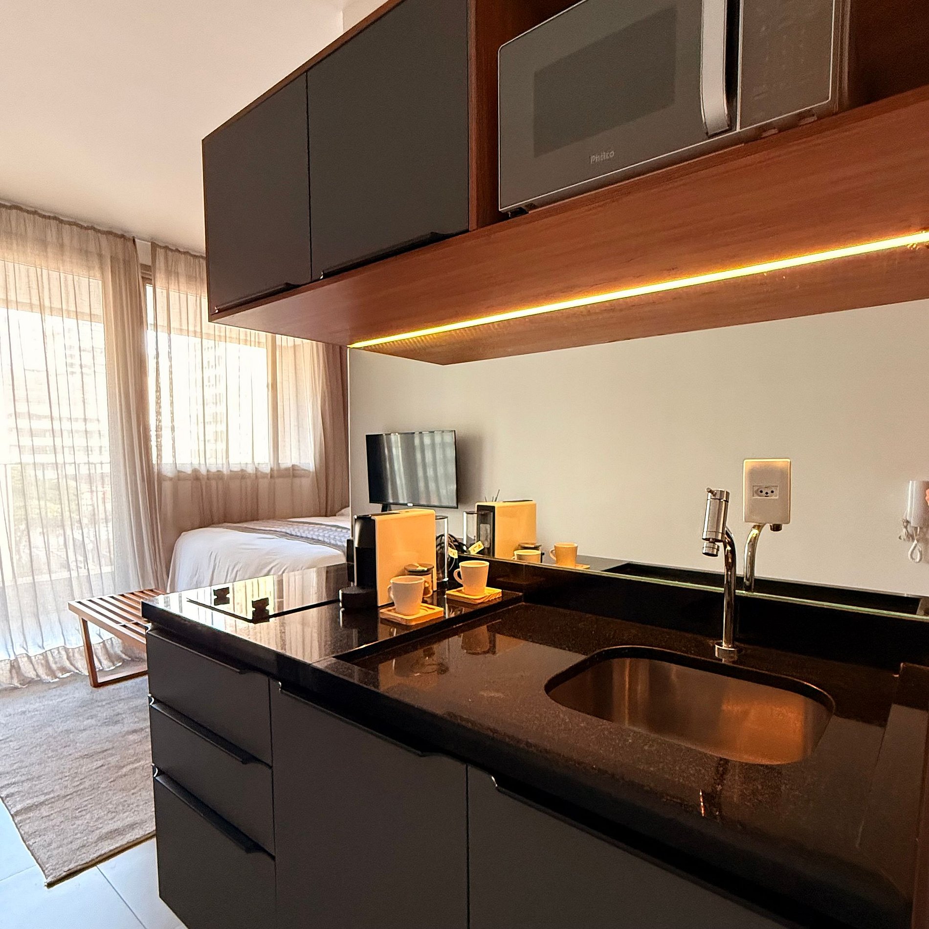 Dois estúdios completos e independentes, localizados no mesmo prédio no Jardins. Ideal para grupos, famílias ou viagens de trabalho que buscam proximidade com privacidade.