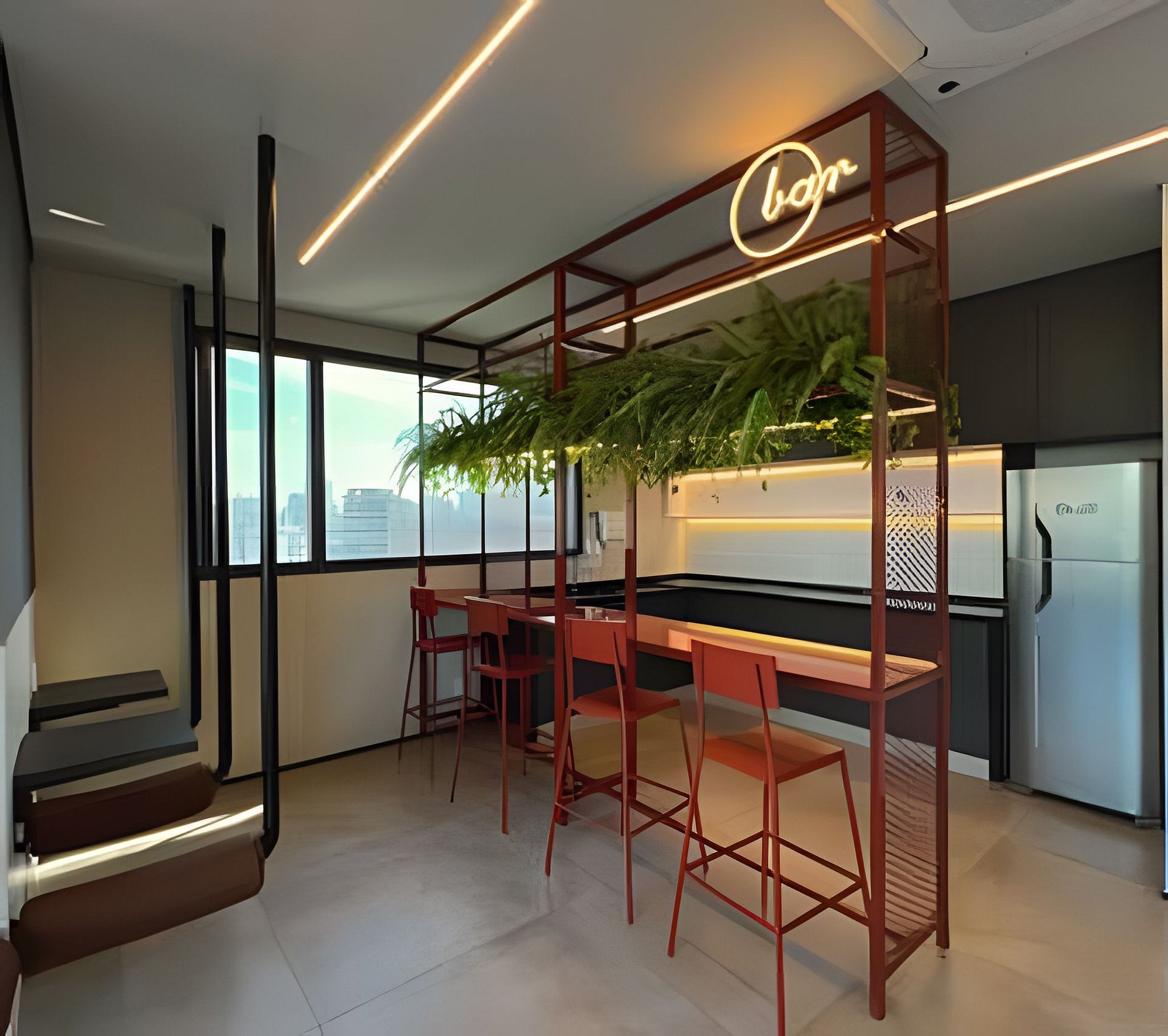 - Coworking: espaço dedicado ao trabalho remoto e reuniões.