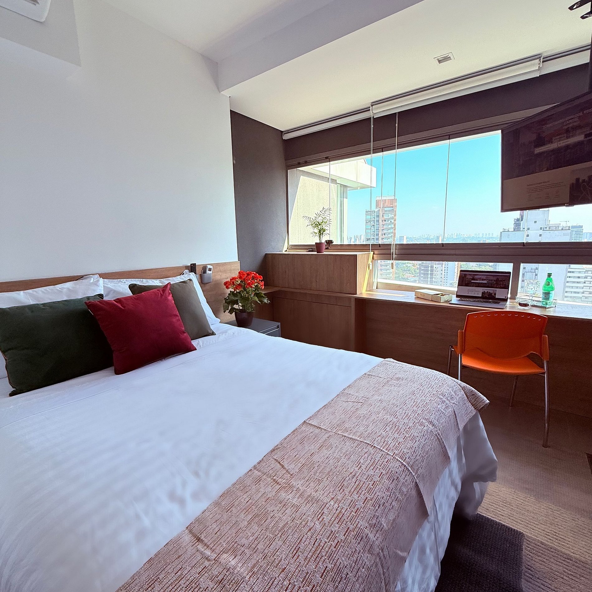 - Cama queen, enxoval premium para quem gosta da hotelaria 5 Estrelas;